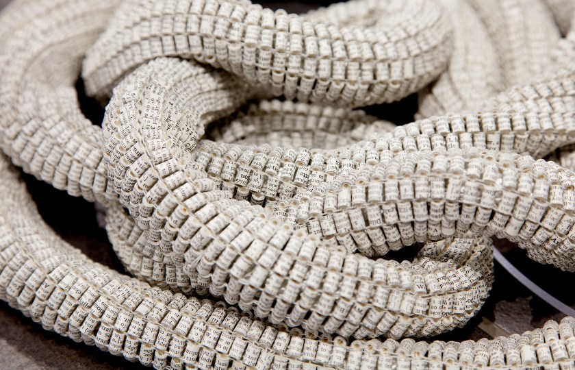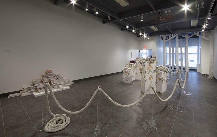 Cathryn Miller’s solo exhibition Word View was shown in the Saskatchewan Craft Council Gallery from September 27 to November 09, 2013. All works in the exhibition were made from discarded books, primarily dictionaries.